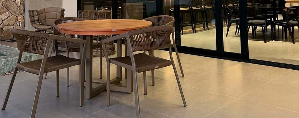 A Fibra ou a Corda Sintética é uma alternativa moderna e prática, combinando uma aparência charmosa com uma durabilidade sem igual. Este material é resistente ao sol e à chuva, além de ser fácil de limpar. Móveis de fibra ou corda sintética são uma excelente escolha para quem deseja um visual sofisticado e contemporâneo, sem a necessidade de manutenção constante.
