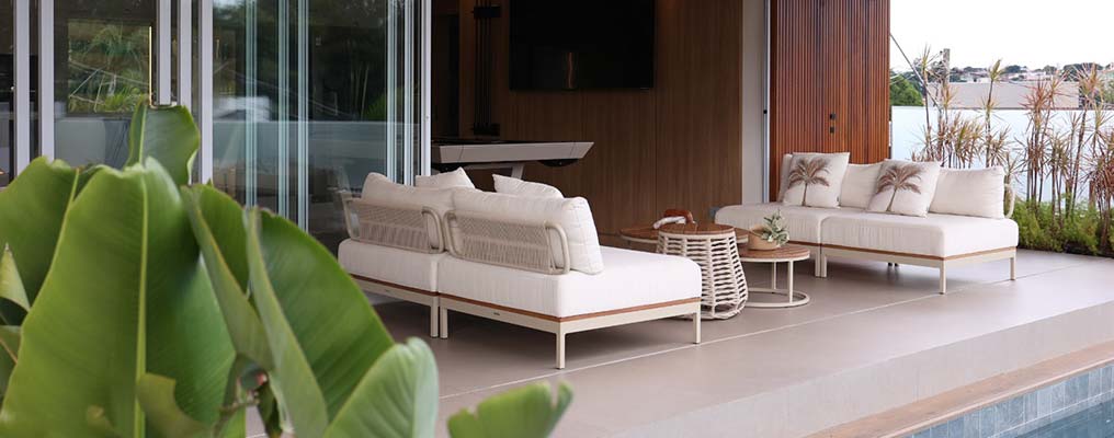 O conforto também é uma prioridade nas tendências de 2026. Espreguiçadeiras e sofás com estofamento extra, tecidos resistentes e ergonomia avançada garantem que você possa relaxar com estilo.