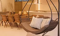 O Balanço Suspenso 2030 é uma peça criada para transformar qualquer ambiente em um refúgio de conforto e contemplação. Com estrutura em alumínio — leve, resistente e de alta durabilidade — ele ganha forma em um desenho fluido, orgânico e elegante.
