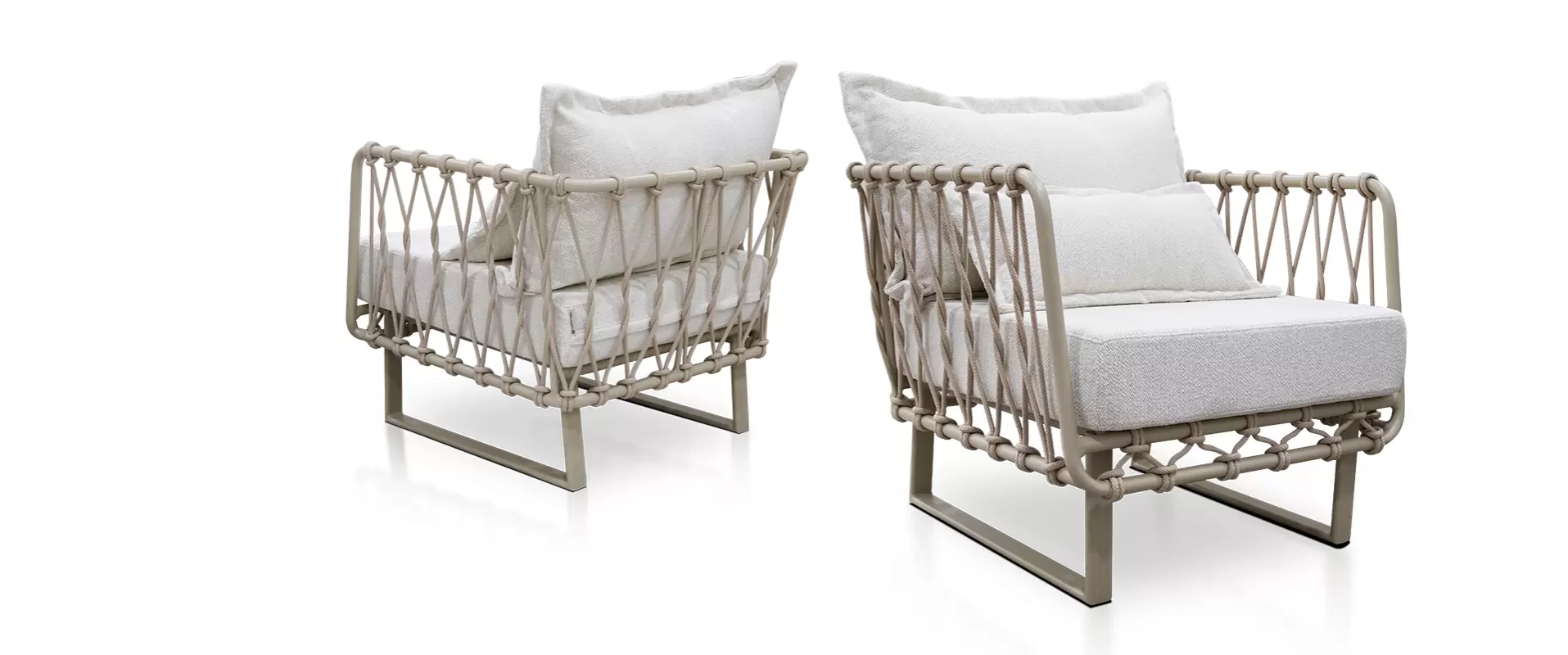 Sua estrutura em alumínio garante leveza e resistência, enquanto a trama em corda náutica envolve todo o design com um toque sofisticado, trazendo um charme único aos ambientes. Mais do que mobiliário, a Poltrona 368/3 é uma experiência de exclusividade.