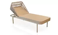 A Chaise 650 foi criada para proporcionar conforto absoluto com estética contemporânea e acabamento artesanal. Seu design combina uma estrutura em alumínio, leve e resistente, com um encosto ajustável envolvente trabalhado em tricô náutic trançado manualmente, formando um desenho geométrico que valoriza a peça e acrescenta textura, movimento e personalidade ao ambiente.