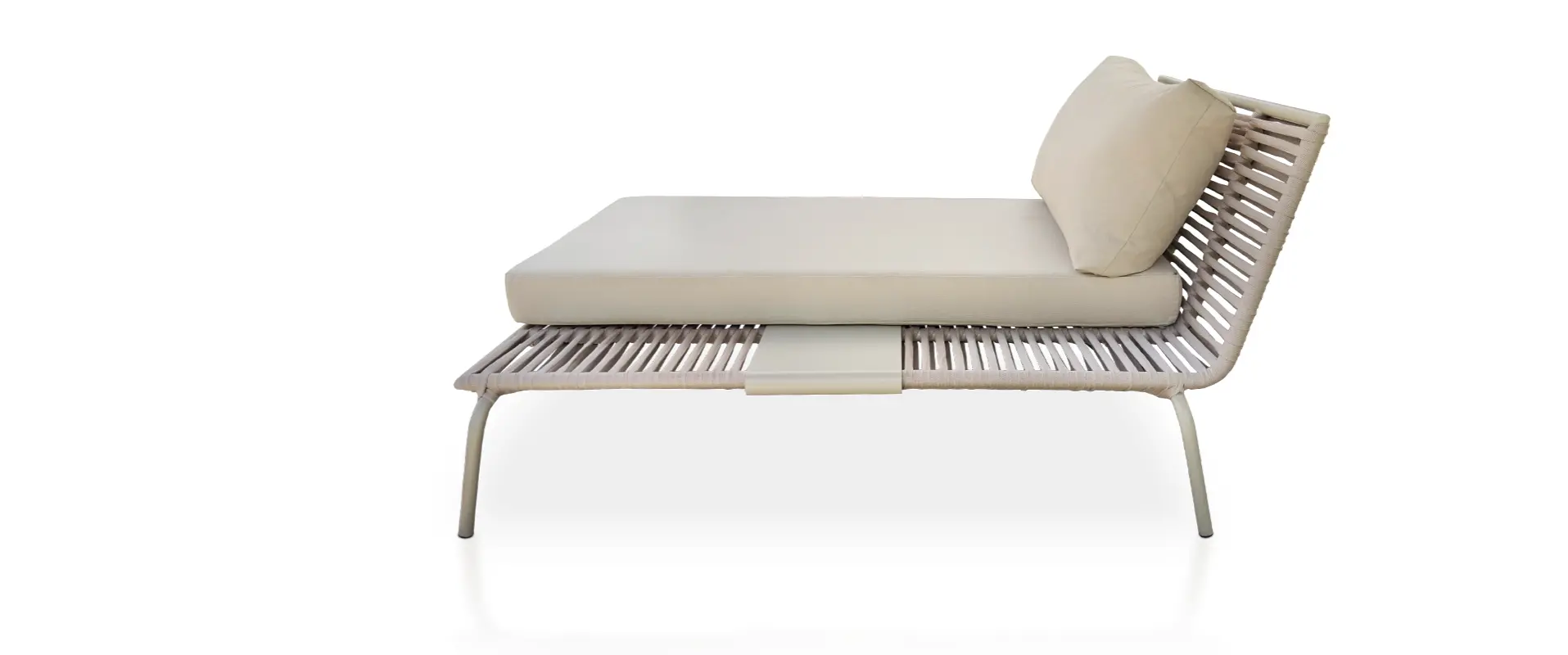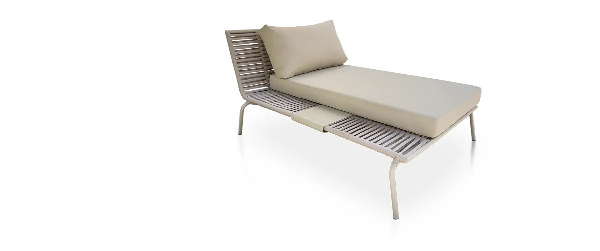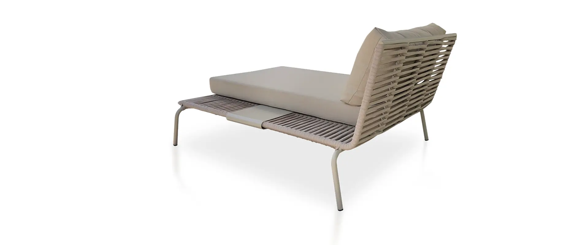 SOLICITE ORÇAMENTOA Chaise Ref. 654 foi desenvolvida para transformar áreas externas em ambientes de puro conforto e elegância. Com estrutura em alumínio de alta durabilidade e acabamento em tricô náutico, a peça une resistência às intempéries com um design contemporâneo e atemporal.